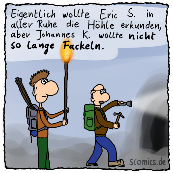 Tags: Cartoon, Comic, Fackeln, Fackel, Feuer, Höhle, erkunden, erforschen, Forscher, lange, Zeit